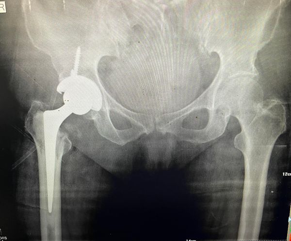 There is usually a spirited disagreement in the orthopaedic community on how to manage a neck of femur fracture like this in elderly. This is 71 year old lady with active lifestyle, who I chose to treat with total hip replacement, doing a thr arguably gives the joint a longer trouble free lifespan when compared to hemi arthroplasty.