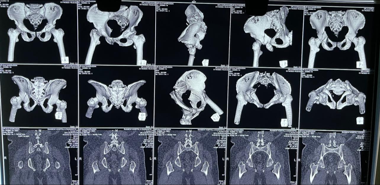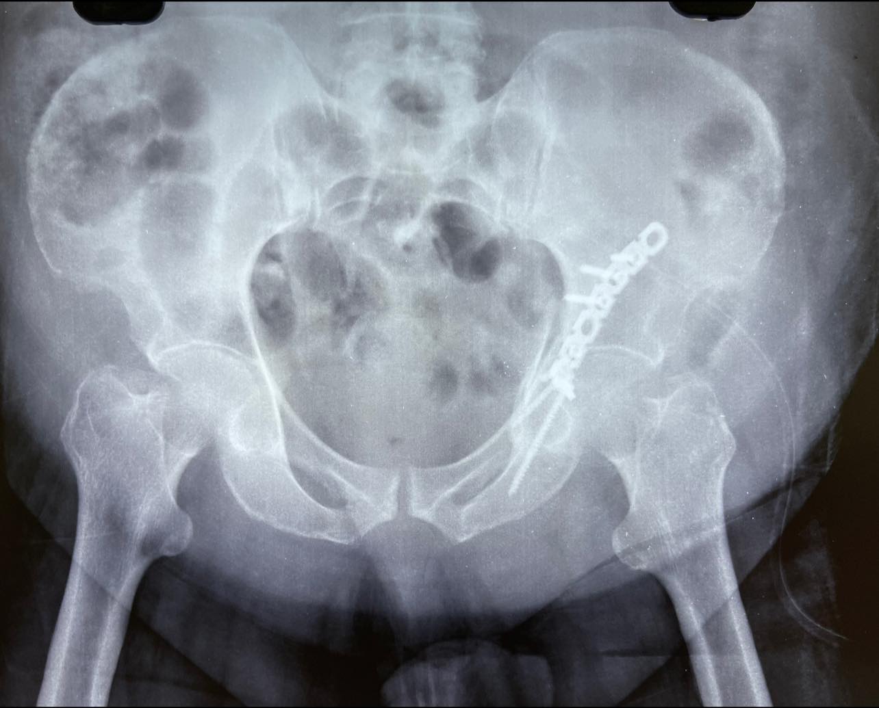 65 yr old male with acetabular fracture in the posterior column with anterior wall.