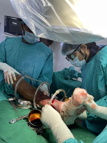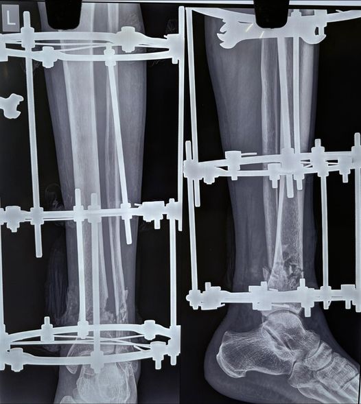 An openfracture is an injury where bones jut out of the limb through a wound, these are often results of high energy road traffic accidents, most surgeons prefer to treat these via multiple surgeries. treating of such fractures in one go is often tricky, as parts of bone and soft tissue and skin goes missing at the site of trauma. In such cases the ilizarov ring fixation system is the magic that helps. This system was developed in russia in the 1950s in the heights of cold war era. I guess this will always be a prime example of “necessity is the mother of invention”