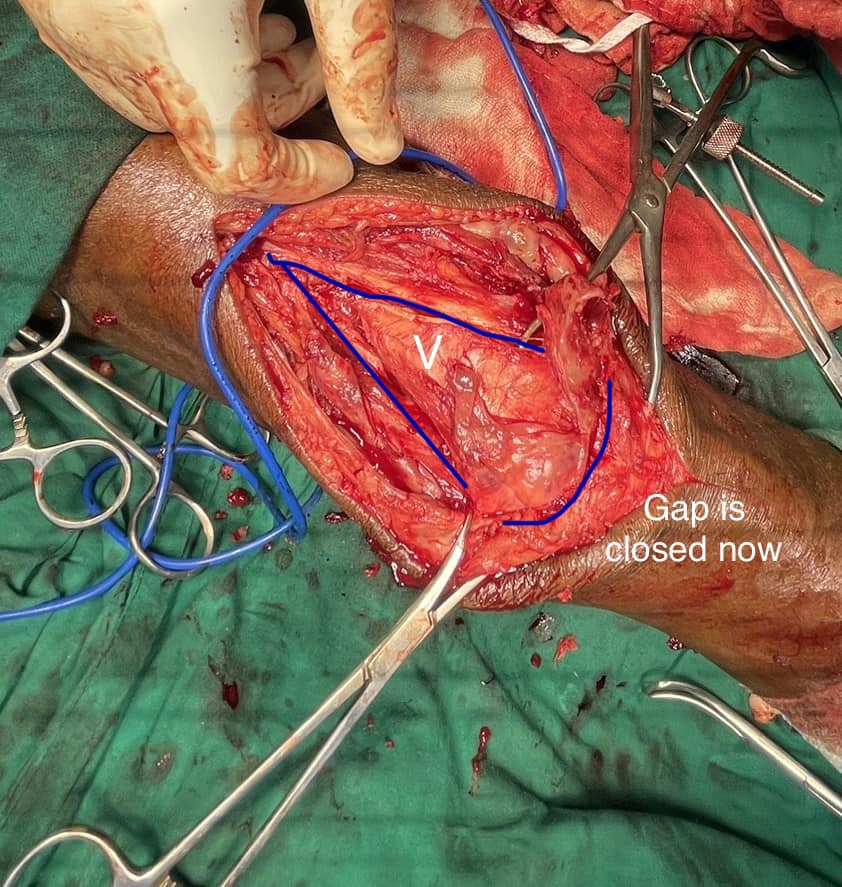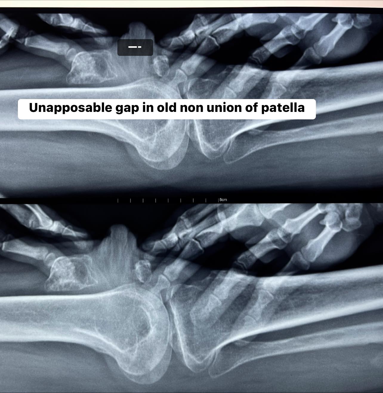 Quadriceps V-Y plasty is a useful tool sometimes needed in extremely bad knees needing total knee replacement or in this case a 6-month-old non union of patella where the two fractured ends are not coming together dude to quadriceps contracture.
